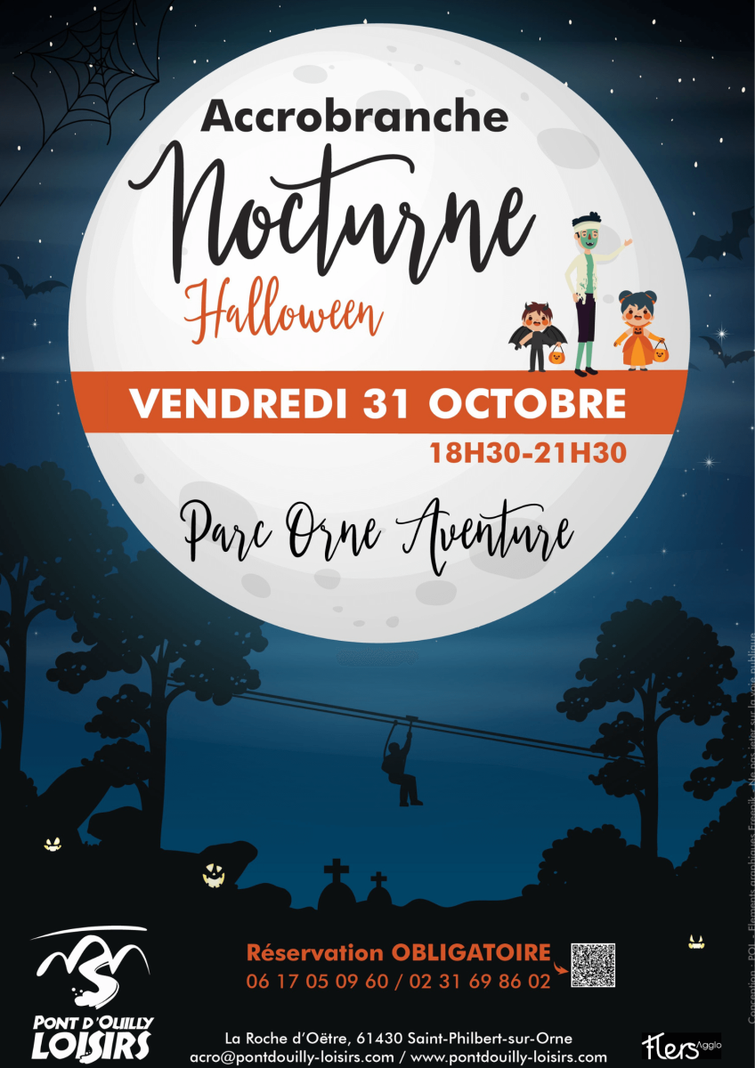 Accrobranche nocturne pour Halloween au Parc Orne Aventure, à la Roche d’Oëtre