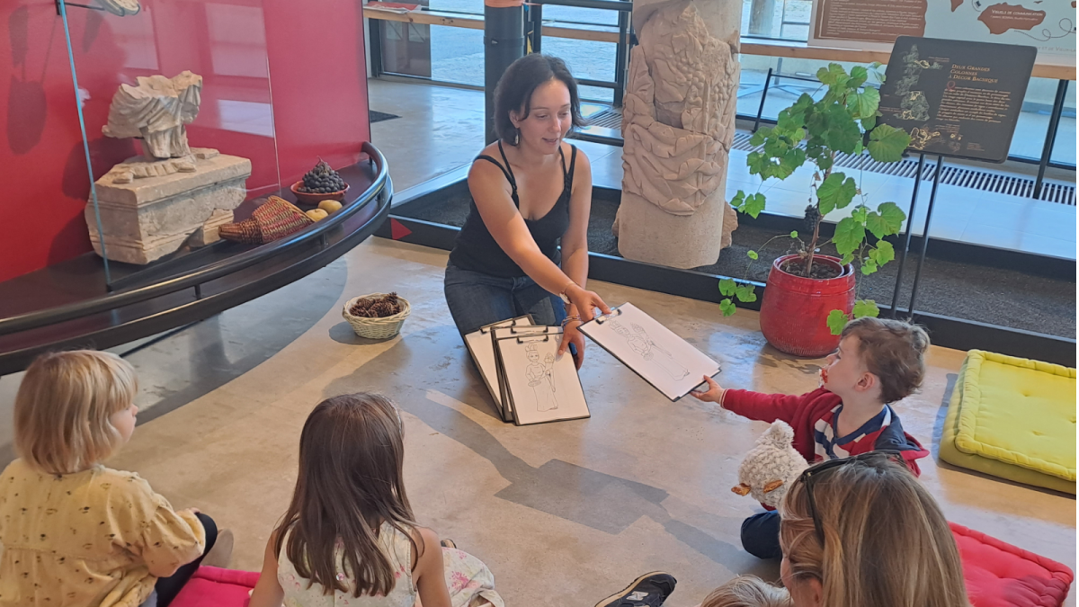 Installés confortablement dans la première salle du musée nos tout petits visiteurs découvrent les pommes et autres fruits du musée. De la sculpture aux odeurs, goûts, textures et comptines... nous croquerons des pommes avec tous nos sens !