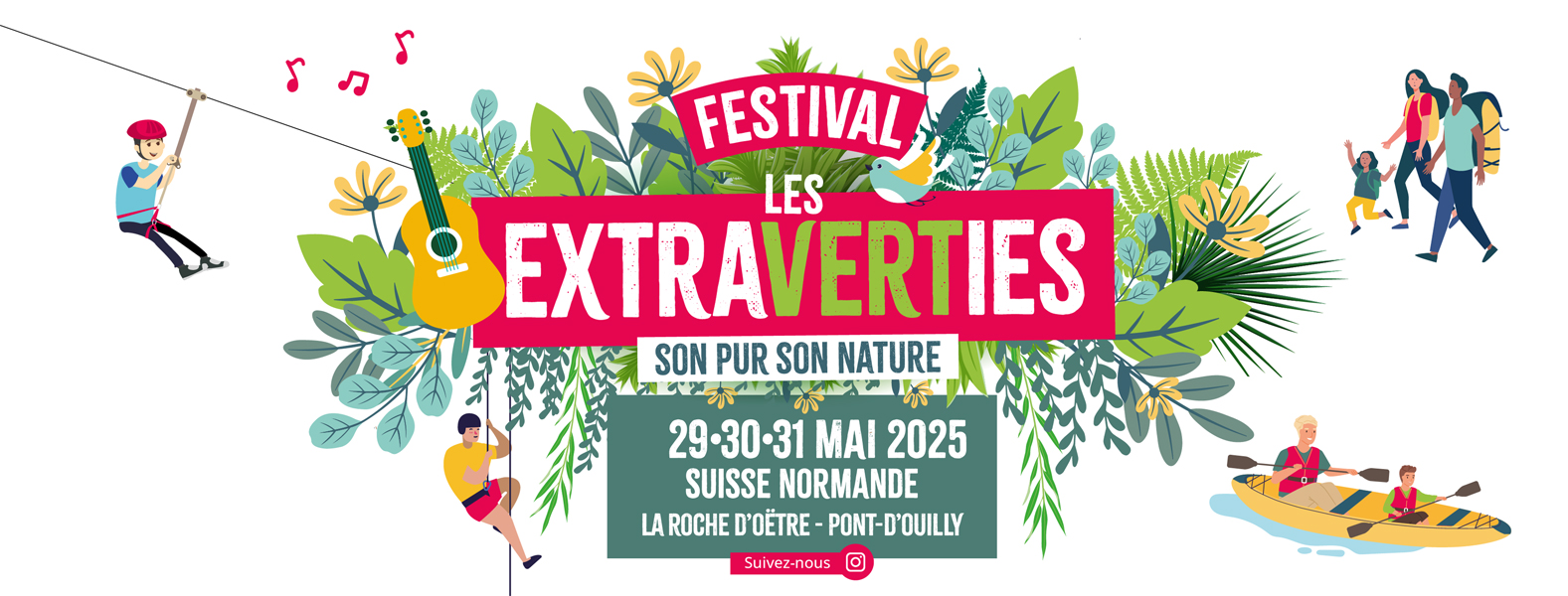 Du 29 au 31 mai 2025, le festival Les ExtraVERTies revient pour une sixième édition à la Roche d’Oëtre et Pont-d’Ouilly. Deux sites emblématiques de la Suisse Normande !
